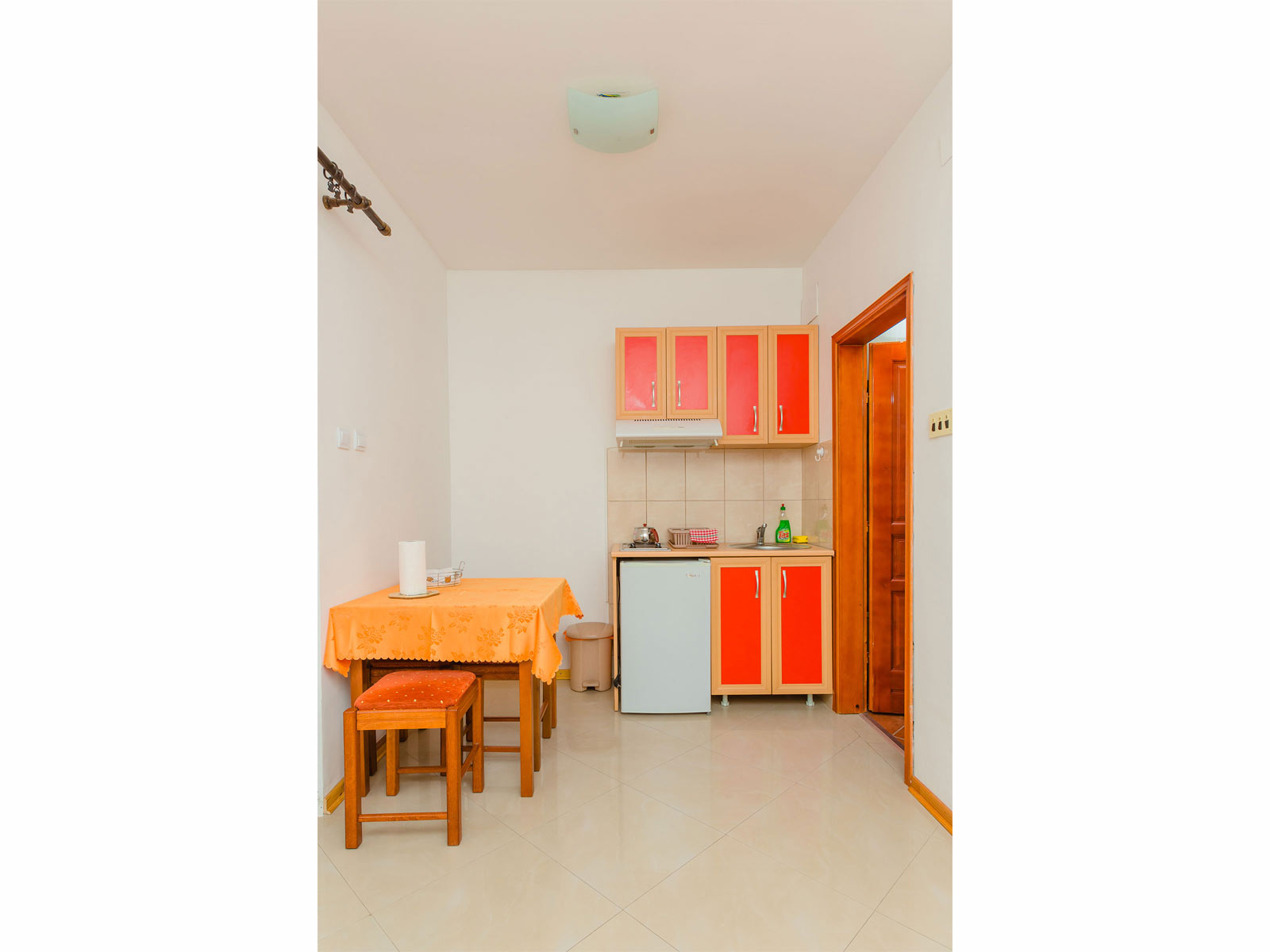 Studio (19m²) se nalazi na prizemlju i posjeduje namještenu terasu u sklopu dvorišta. U njemu se nalazi veliki bračni ležaj, kompletno opremljena kuhinja, fotelja na razvlačenje, oprema za peglanje I fen. Ovaj apartman je odlična opcija za solo putnike, porodice i grupe do 3 osobe.