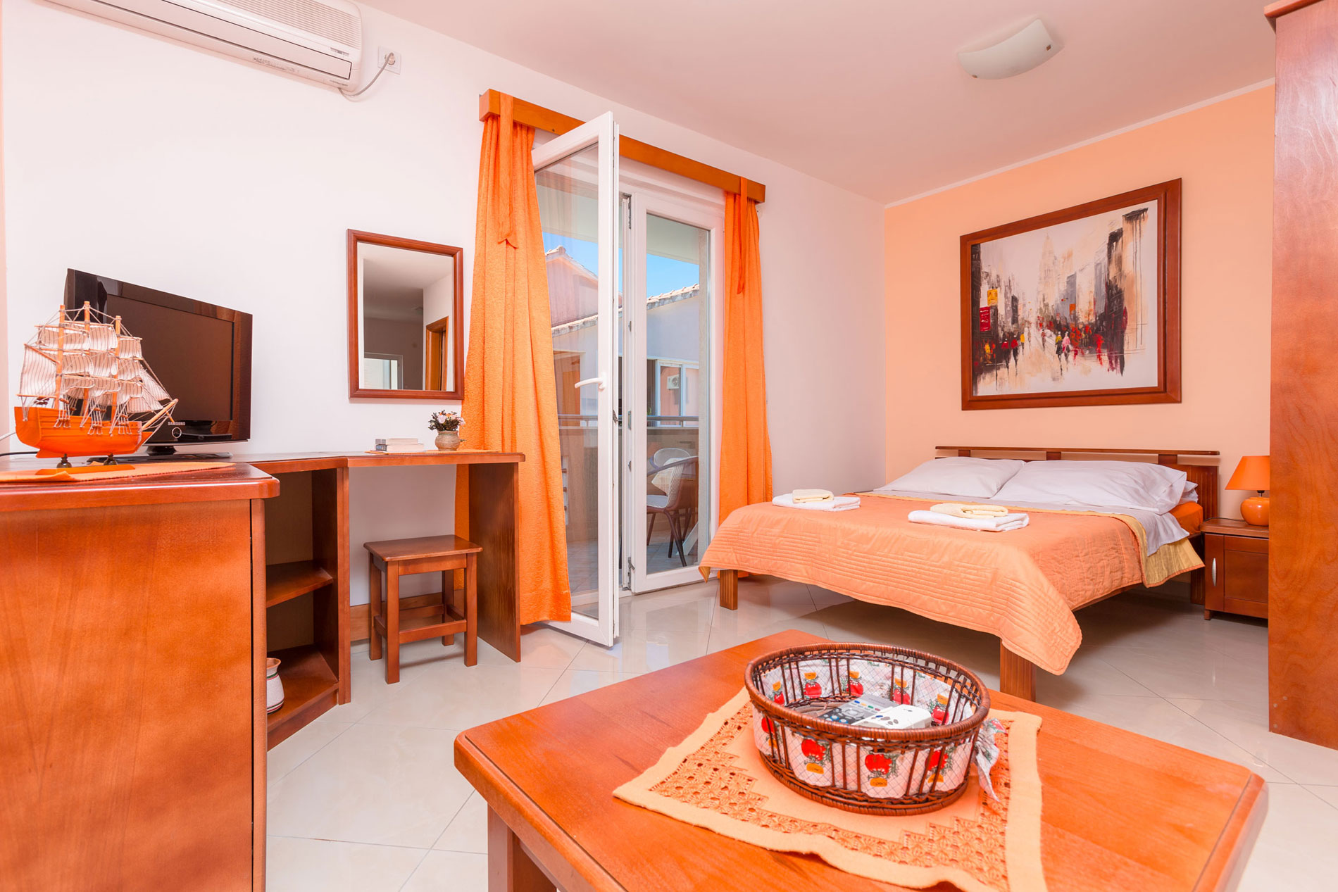 The studio with a beautiful sea view (38m²) has a large balcony overlooking the Bay of Tivat and Porto Montenegro.